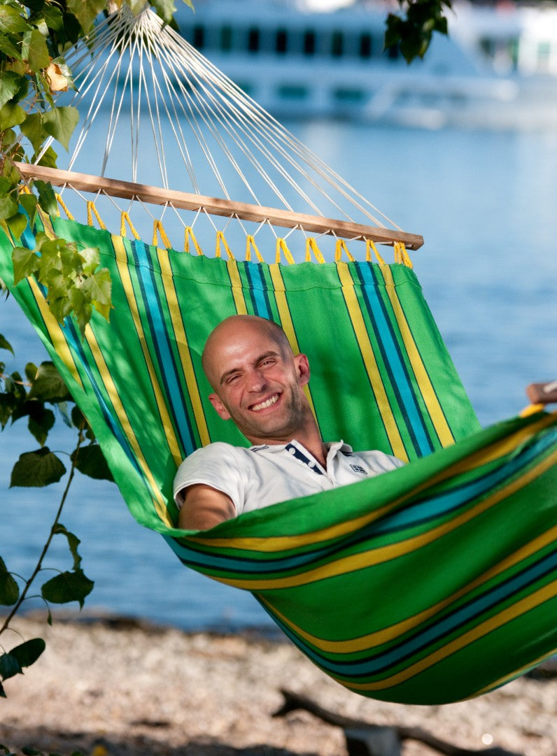 Las hamacas Currambera tienen un material resistente ideal para exteriores, de fácil cuidado elaboradas a mano en Colombia.